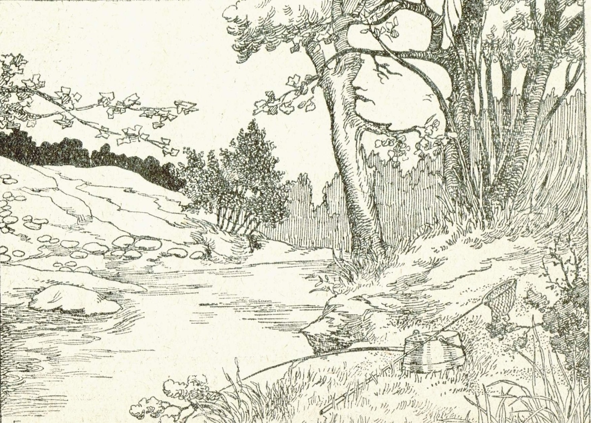 Перед взором предстает живописный пруд с мерцающей водой и зелеными травами. На первый взгляд, всё кажется спокойным, и лишь удочка напоминает о рыбаке. Однако, где же он? Неужели он вымахал в высокой траве? Если внимательно приглядеться, возможно, его стоит искать в самом пейзаже, слившемся с природой.