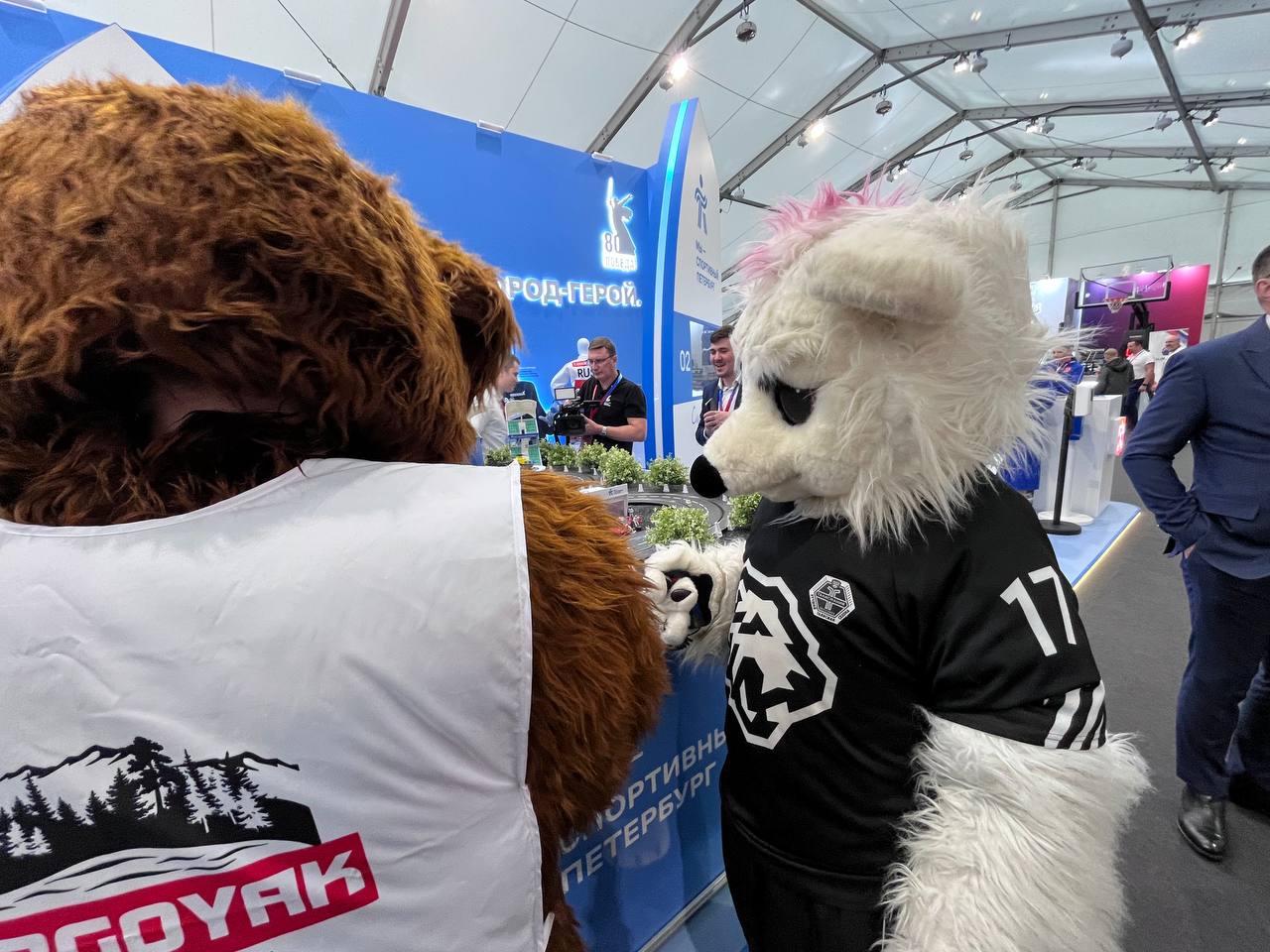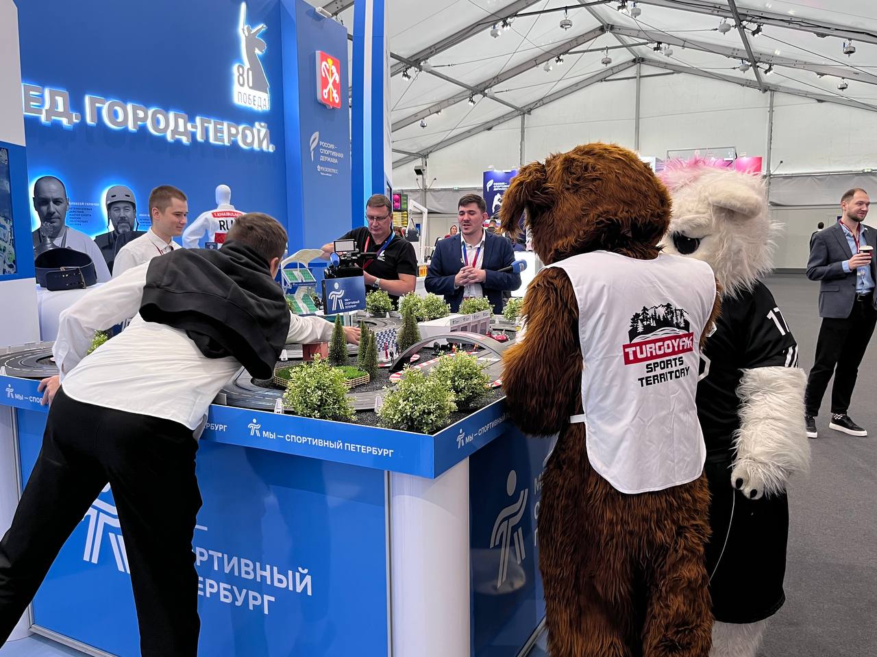 Здесь можно увидеть различные российские трофеи, встретить маскотов российских команд и поиграть в городки на ретро-автомате.