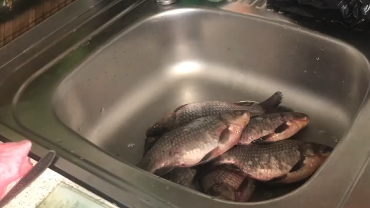 - Метод без инструментария: Поместите рыбу в таз с водой, удерживая ее «головой» вниз, и начинайте очищать пальцами. Вставляйте большой палец под чешую у хвоста и проводите вдоль тела рыбы; это позволяет быстро убрать чешую. Жесткие участки по-прежнему необходимо будет подрезать ножом, а из внутренностей лучше убрать всё, кроме икры, чтобы избежать неприятного привкуса.