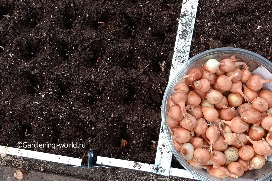 Расстояние между луковицами при посадке не является строгим правилом, особенно если цель — ранняя зелень. Их можно размещать на расстоянии 2-3 см друг от друга и заглублять на две высоты луковки. Для тех, кто нацелился на крупные головки, стоит сделать бороздки глубиной 4-5 см с расстоянием 15-20 см между ними.
