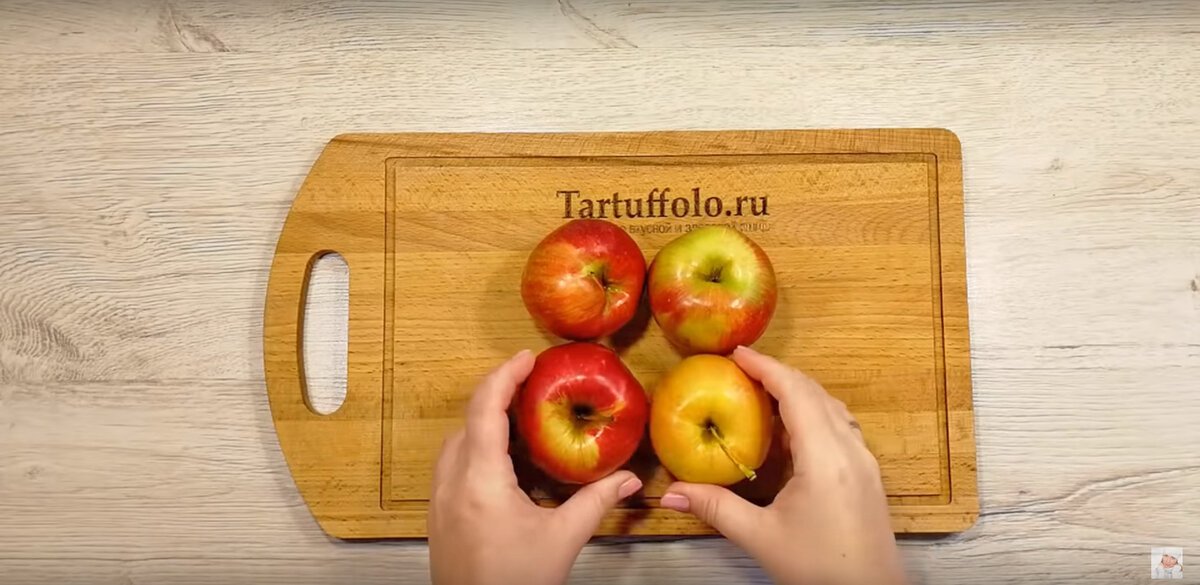 Для начала самые свежие яблоки нужно очистить от кожуры и удалить семена. Затем их стоит поместить в полиэтиленовый пакет, завязать и сделать несколько проколов для выхода пара. Это важный момент — так яблоки станут мягкими после пятиминутной «прогонки» в микроволновой печи.