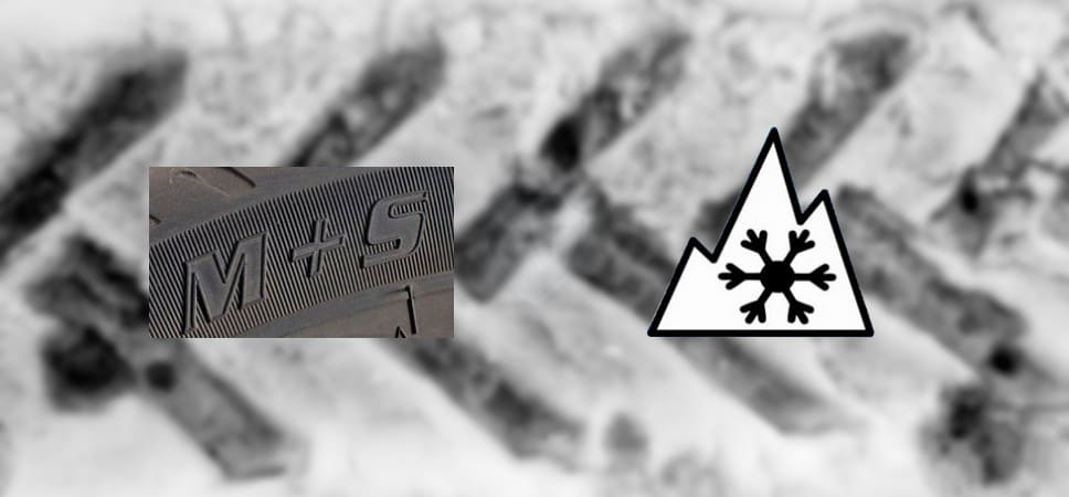 - Маркировка: Шины должны иметь обозначения «M+S», «M&S», значок снежинки или бути шипованными.