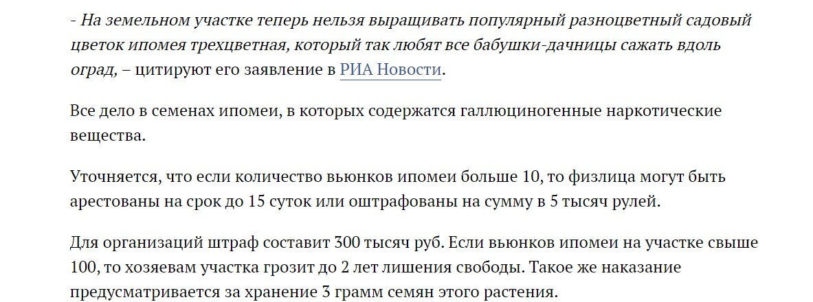 Согласно новым правовым нормам, если у вас на участке окажется больше десяти экземпляров ипомеи трехцветной, это может привести к серьезным последствиям. Ответственность за нарушение закона варьируется в зависимости от того, являетесь ли вы физическим лицом или представляете организацию, а также от количества найденных растений.
