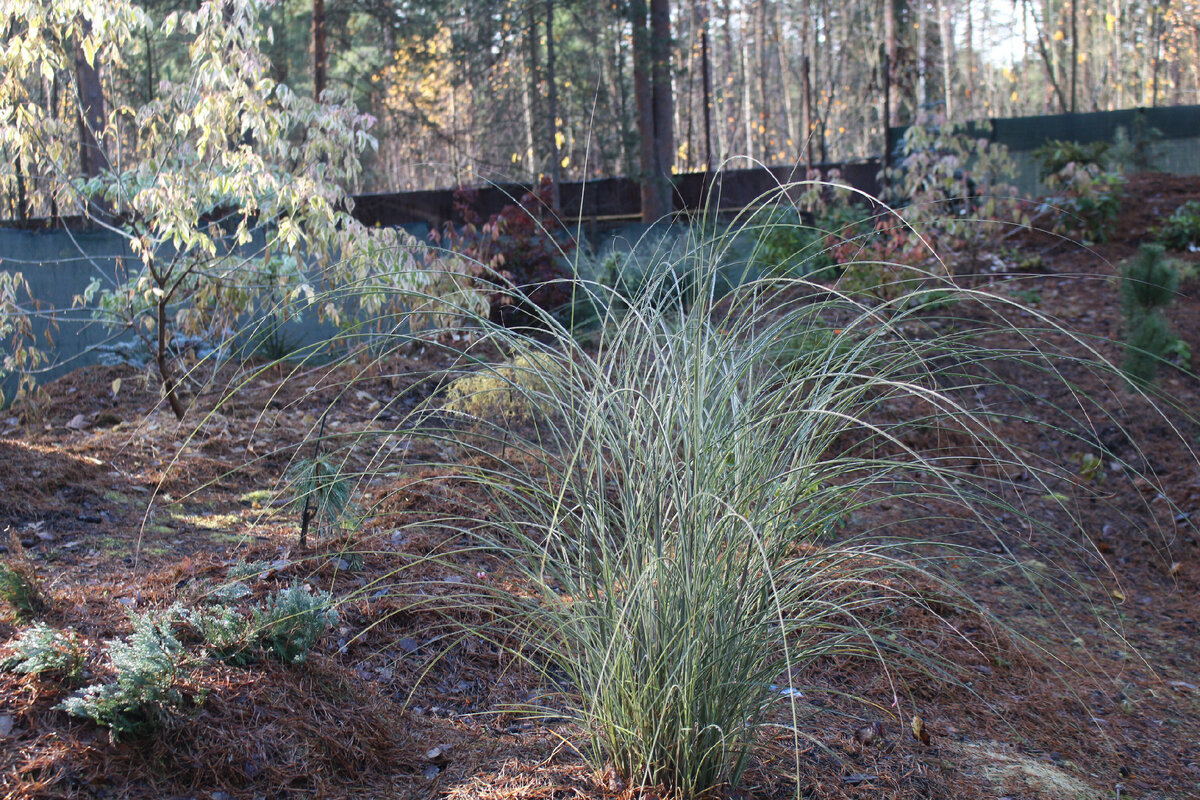 - Тонкие листья: В отличие от более привычного мискантуса, ширина листьев Morning Light составляет всего 3-5 мм, что создает легкость и ажурность общей формы кустарника.