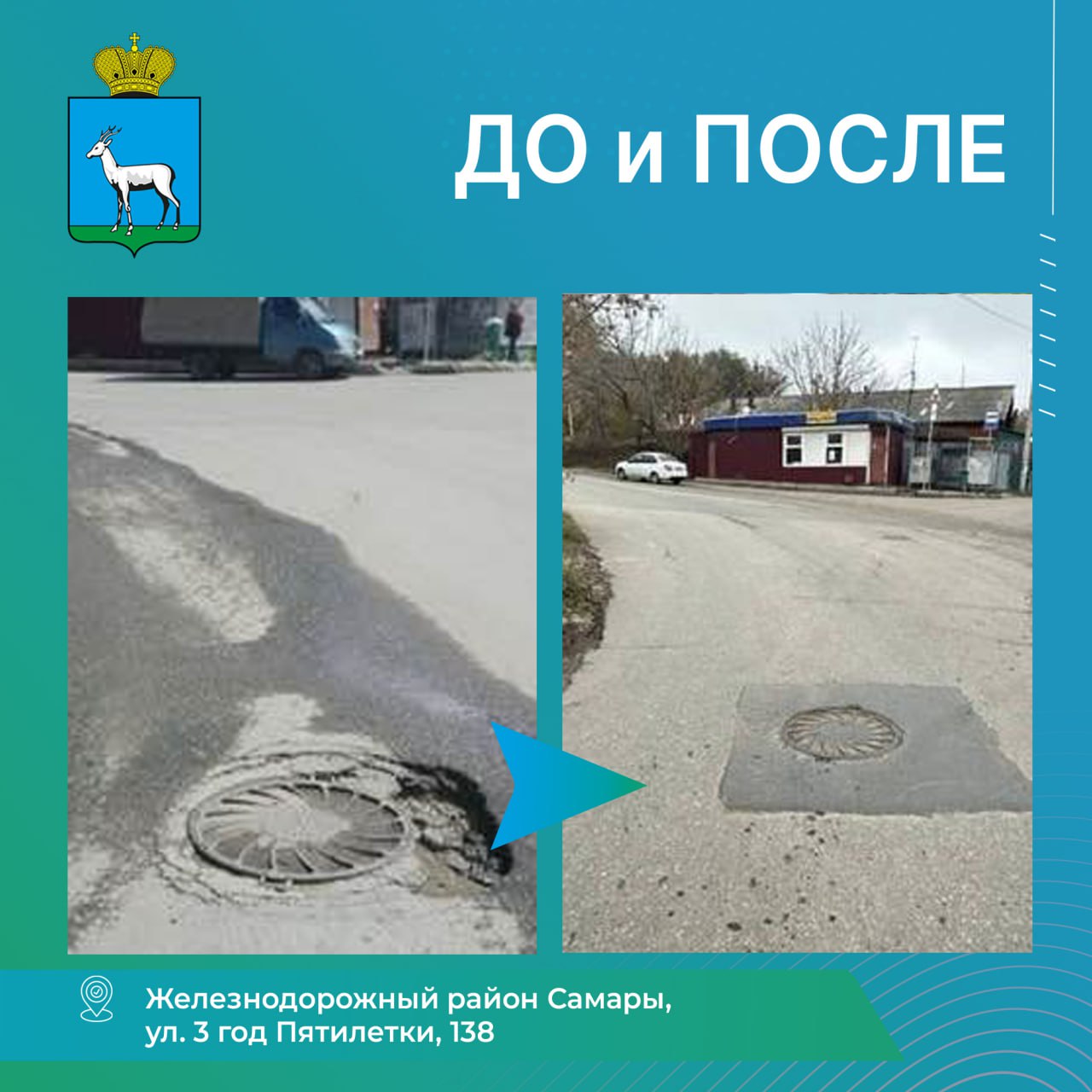 Провал дорожного полотна вокруг колодца на ул. 3 год Пятилетки устранен