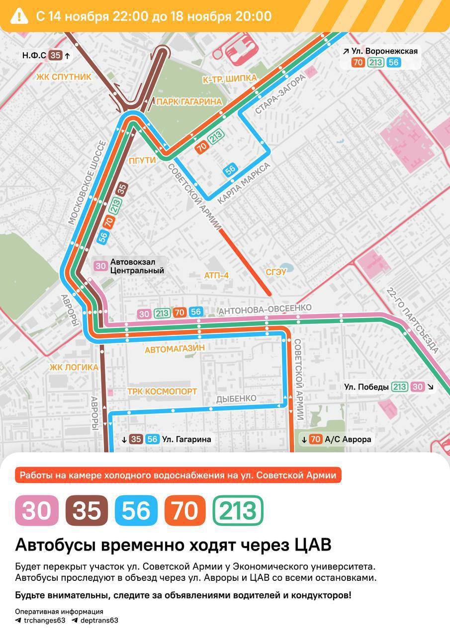 Маршруты движения изменятся у автобусов №30, №35, №56, №70 и №213.