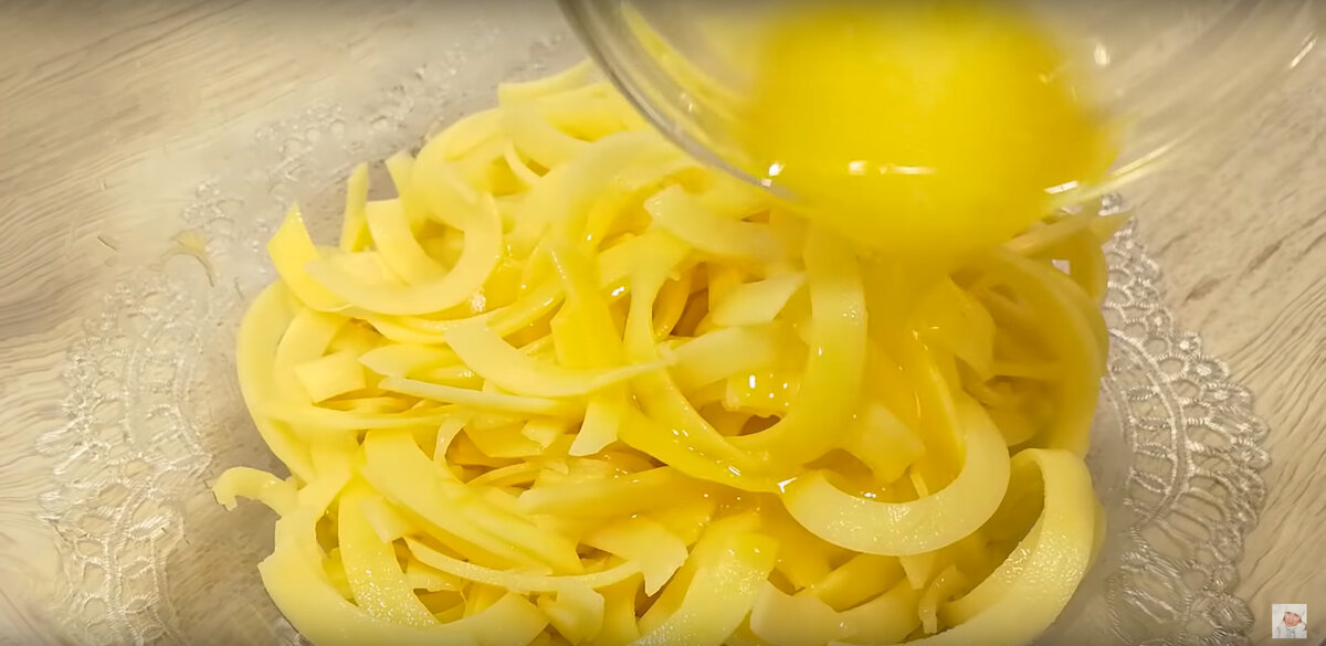 Сначала необходимо подготовить картофель. Его можно очистить и нарезать различными способами — используя комбайн, нож или терку. Чем тоньше нарезка, тем быстрее готовится. После этого: