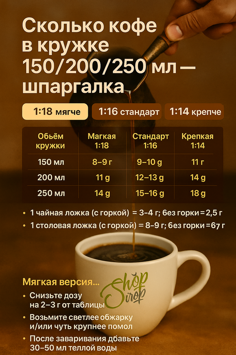 Следует помнить, что точные пропорции имеют важное значение. Для комфортного заваривания лучше ориентироваться на три основных соотношения: 1:18 / 1:16 / 1:14. Эти знания сделают процесс приготовления еще более увлекательным и разнообразным.