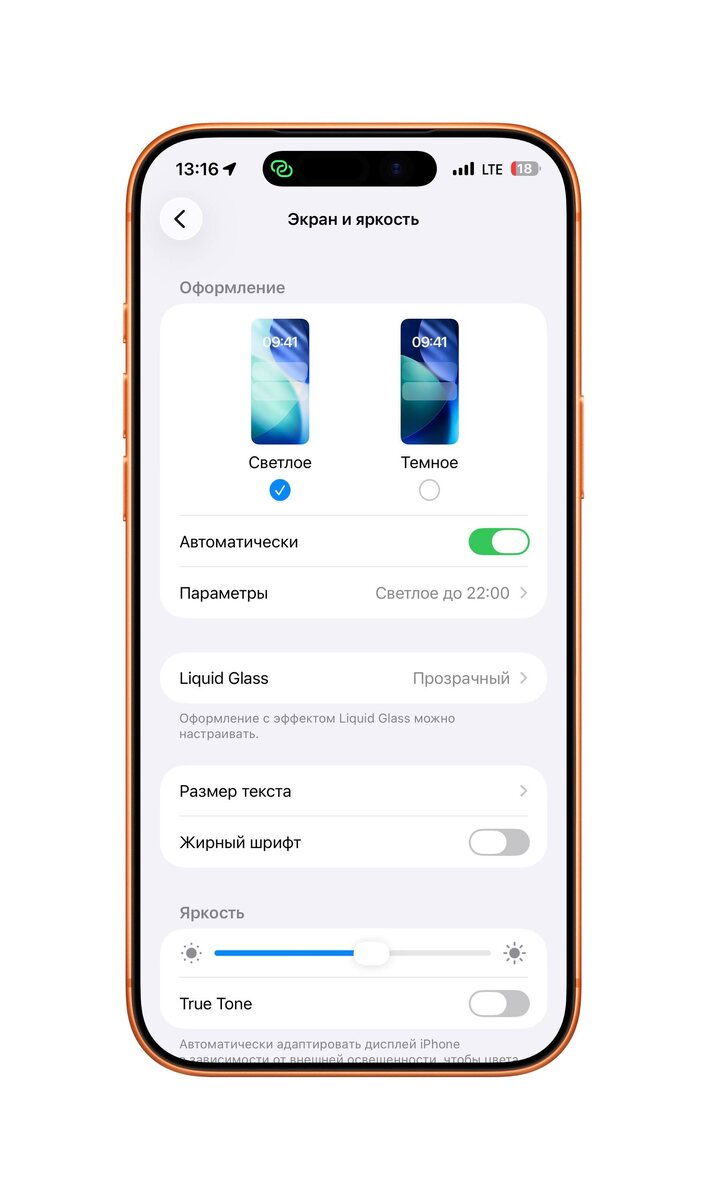 Чтобы активировать или изменить эффект, достаточно зайти в раздел настроек. Это можно сделать, перейдя в Настройки ->Экран и яркость ->Жидкое стекло. В этом меню доступны два замечательных стиля: прозрачный и тонированный. Выбор зависит лишь от ваших предпочтений и настроения, что позволяет каждому создать уникальный интерфейс.