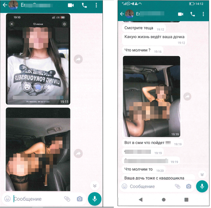 После того как Ксения сообщила представителю экс-партнера о намерении обратиться в СМИ, она получила сообщения с аналогичными угрозами. Переписка стала доказательством того, что ее интимные фотографии использовались как средство давления. Это поведение, по словам правозащитников, представляет собой явное нарушение статьи 137 Уголовного кодекса РФ о неприкосновенности частной жизни.