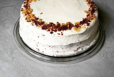 Для финального штриха приготовим глазурь: белки отделить от желтков и взбить с сахарной пудрой, добавляя немного лимонного сока. Низ торта можно украсить, обрезав края, чтобы они выглядели аккуратно. Обмазать глазурью верх и бока, а оставшимся кремом довести до идеала.