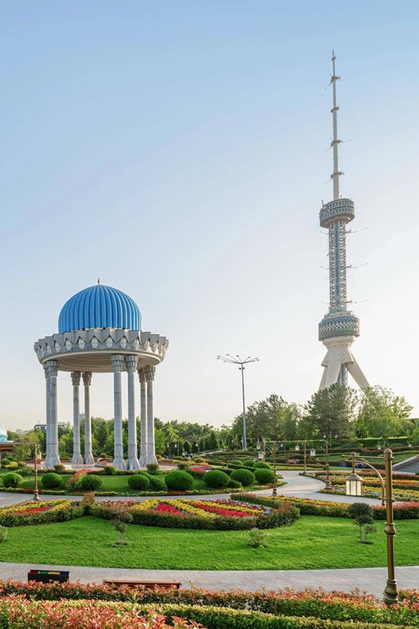 Ташкентская телебашня выше всех остальных в Средней Азии и 11-я в мире. Ее вестибюль украшает мозаичное панно. Смотровая находится на высоте 110 м, и вид открывается действительно стоящий. Когда спуститесь вниз, не торопитесь вызывать такси: рядом готовят плов, который ценят местные. Это место называют Beshqozon («Беш Казан»), или «плов у телевышки».