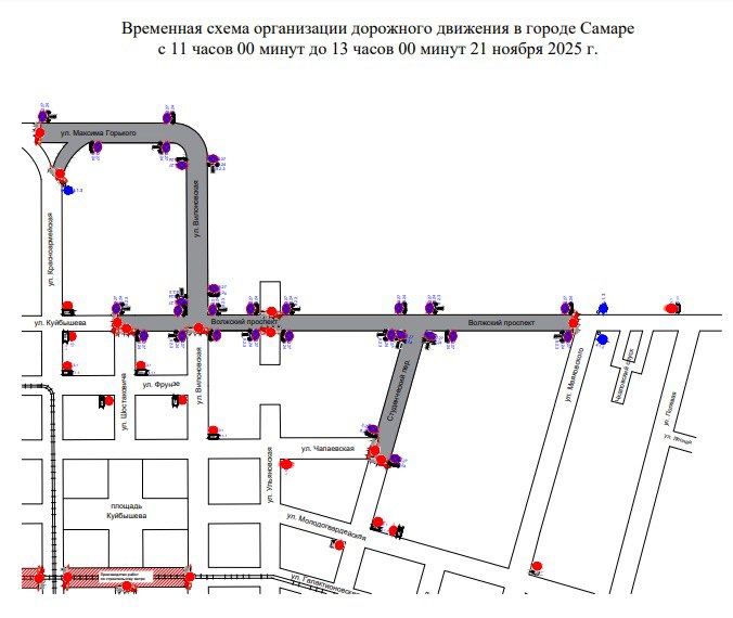Движение транспорта, включая средства индивидуальной мобильности и велосипеды, будет ограничено 21 ноября с 11:00 до 13:00 по следующим участкам: