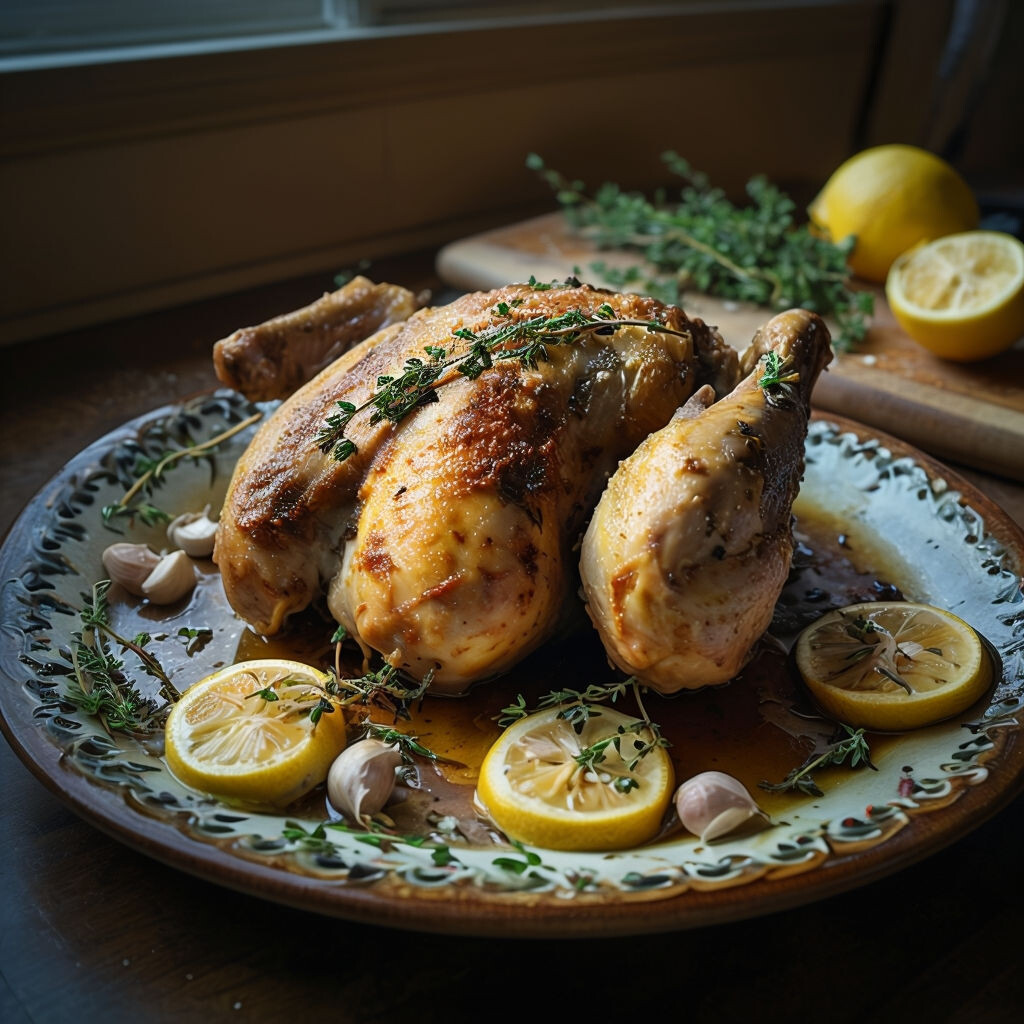 - Жареная курица с тимьяном и лимоном: Классическое сочетание, придающее куриным бедрам изысканный вкус и удивительный аромат.