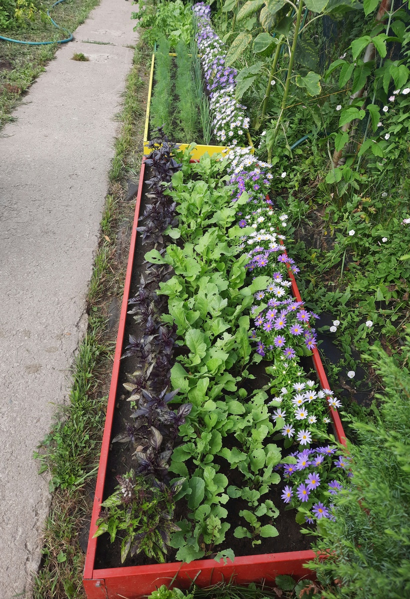 Просветленный огородник и увлеченный цветовод столкнулись в весьма интересном противостоянии: цветы или съедобные культуры? К счастью, оба нашли компромисс. Приятные глазу астрочки разместились на одной грядке, а на других растут ароматные травы и весенние овощи — шпинат, редис, укроп и прочие зелени, предоставляя не только эстетическое, но и гастрономическое удовольствие.