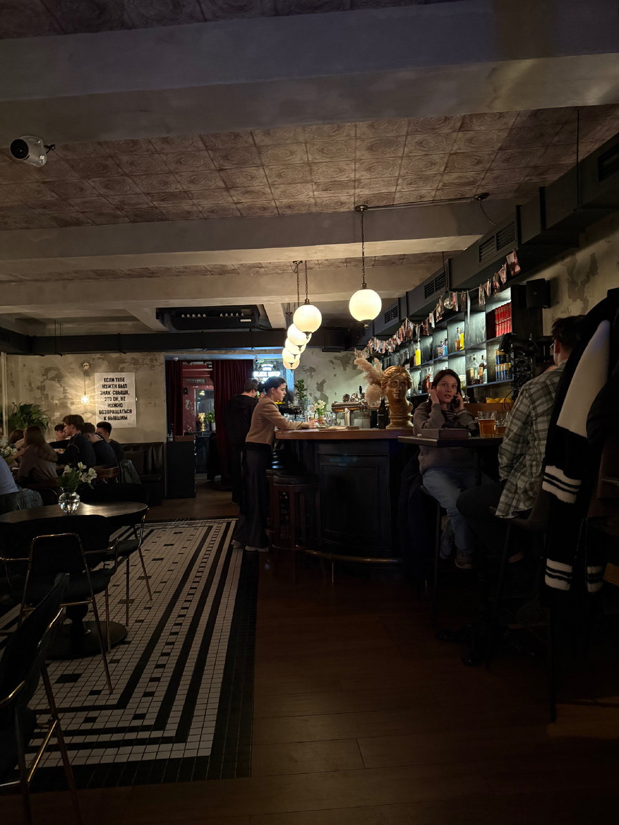 Интерьер заведения современный и лофтовый: бетонные стены, разнокалиберные столики и барная стойка создают стильное пространство, однако громкая музыка может отвлекать от общения. Официанты стараются угодить, хотя порой их действия выглядят не совсем слаженно. Ценителям спокойной атмосферы следовало бы учесть этот момент.