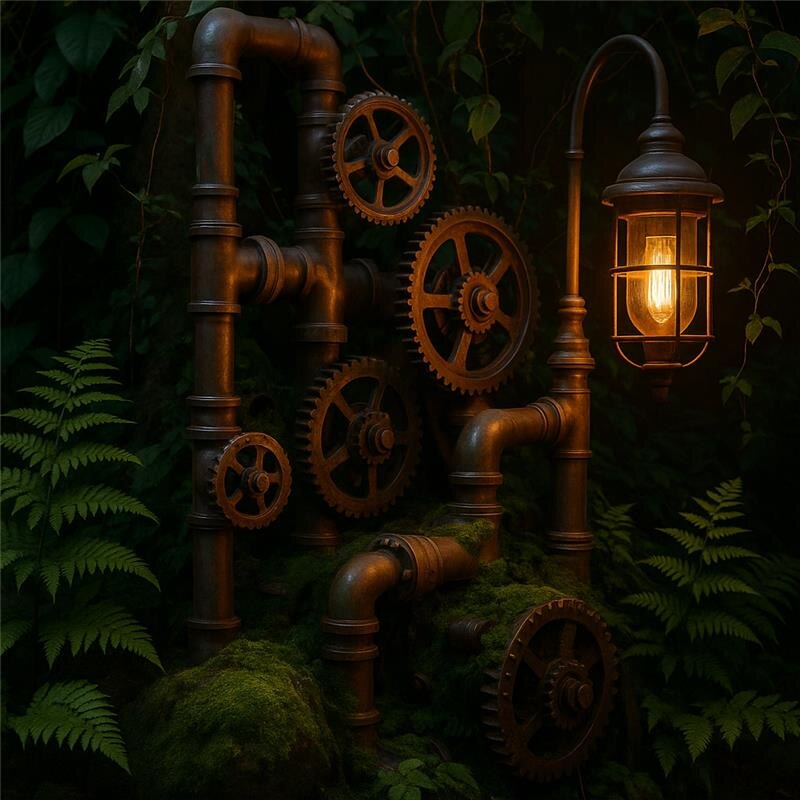 Представьте себе сад, где изящные вьющиеся растения обвивают медные трубы, а среди зелени прячутся ржавые шестерёнки и уникальные светильники в стиле ретро. Это не просто сад, а целый мир, погружающий в альтернативную викторианскую эпоху, где паровые машины и механизмы встречаются с мощной природой. Такой стиль, известный как стимпанк, превращает привычные пейзажи в удивительные ландшафты, переплетая природу и технику.
