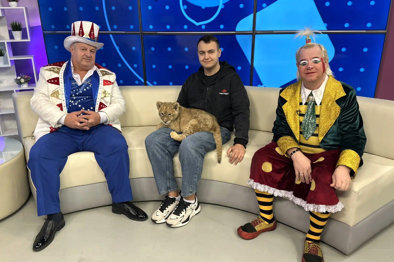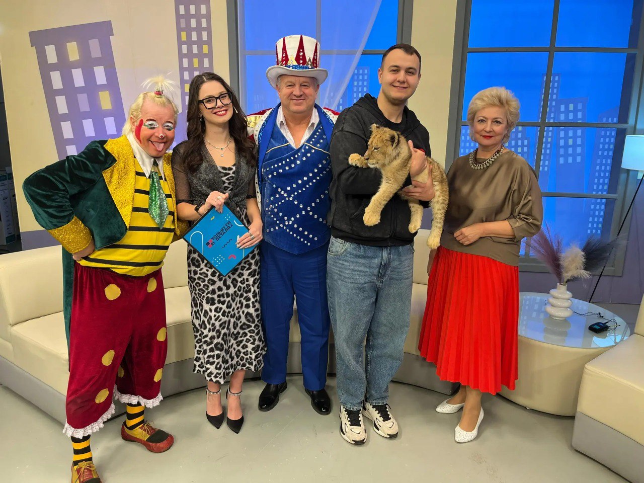 Красивый и дружелюбный львёнок появился сегодня в студии телеканала ТОЛЬЯТТИ 24! Вместе с ним нашими гостями стали отважные дрессировщики и весёлый клоун.