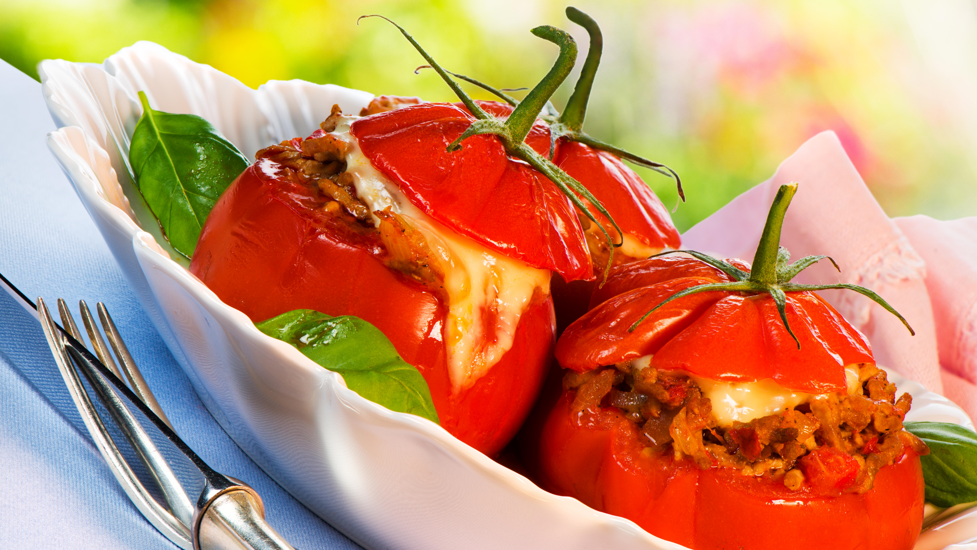 Вкуснейшие фаршированные помидоры сведут гостей с ума, ведь что может быть лучше сочетания горячего сыра и грибов? Вы и моргнуть не успеете, как от закуски не останется ни крошки. А яркое блюдо гармонично впишется в общую композицию.