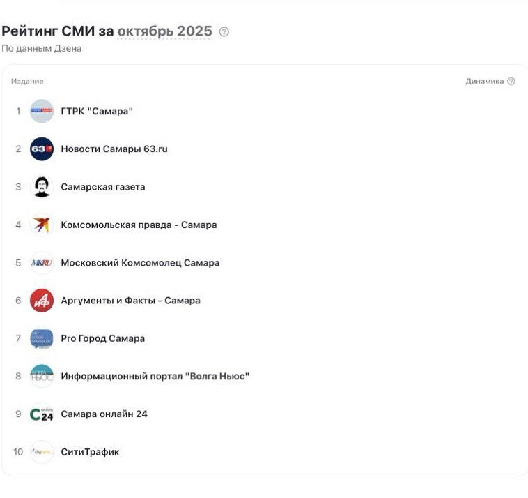 ГТРК «Самара» заняла 1 место в рейтинге региональных СМИ за октябрь 2025 года по данным Дзена. Это высокая оценка нашей работы и доверия аудитории.