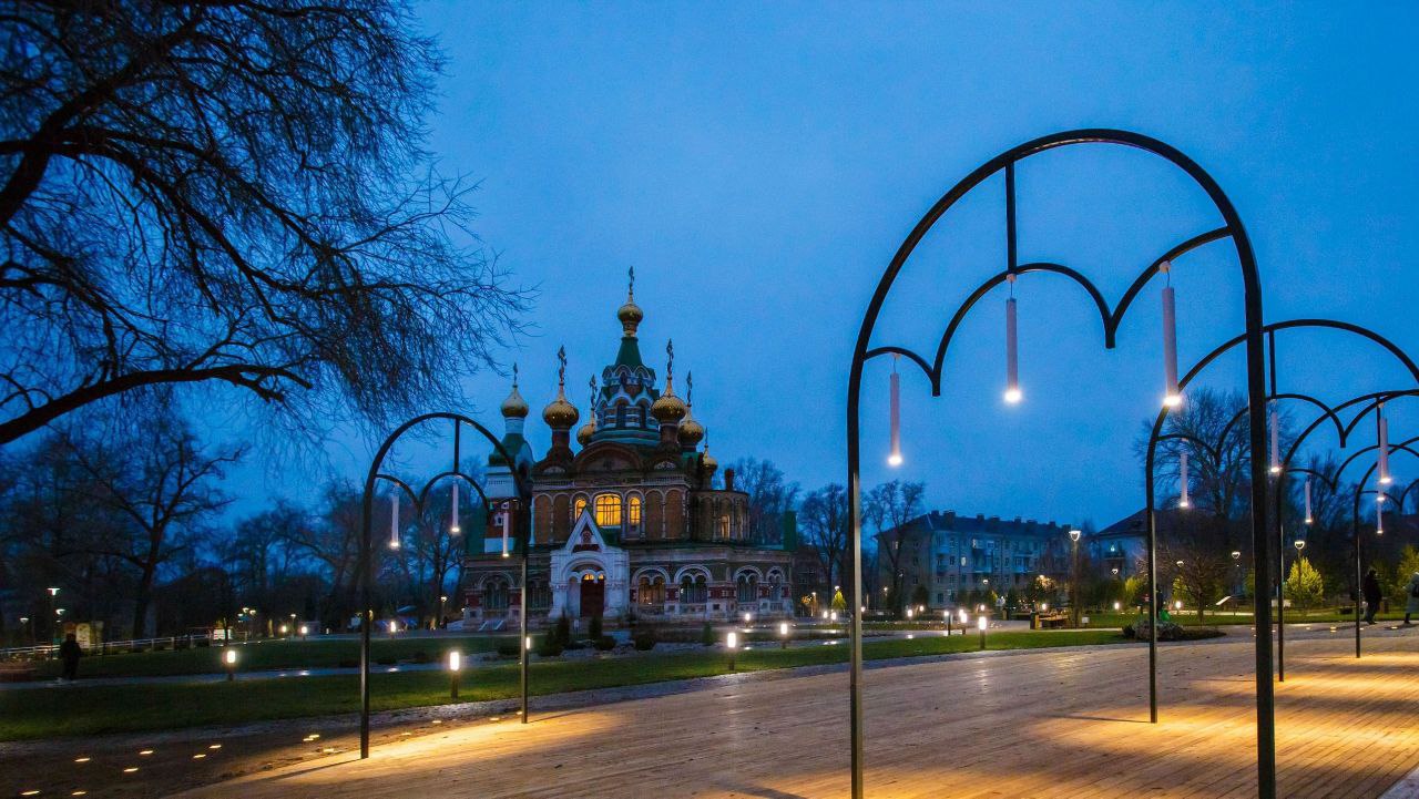 Сквер с первых дней стал популярным пространством для прогулок и досуга жителей города. Вечером в сквере зажигается разноуровневое освещение, подсветка вмонтирована даже в брусчатку.