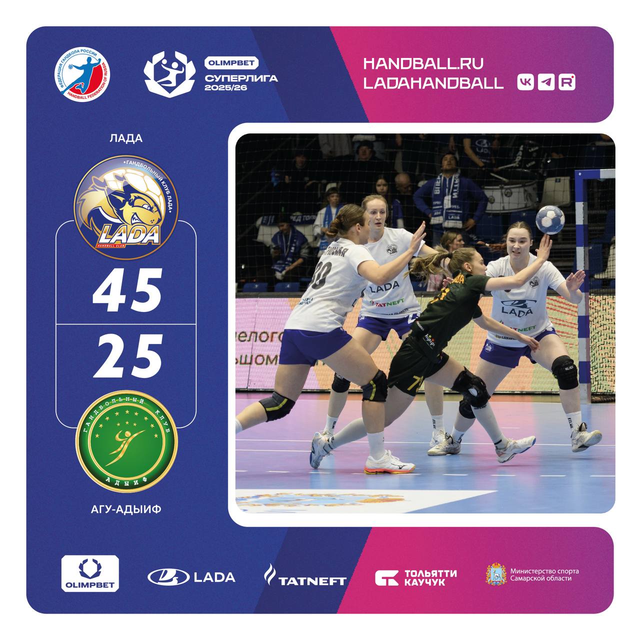 Матч «Лада» - АГУ-«Адыиф» (Майкоп) завершился со счетом 45:25 (22:11).
