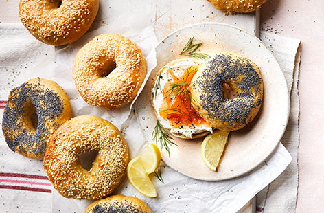 Как только тесто будет готово, его следует переложить в смазанную маслом миску и накрыть пленкой. Оставьте его расстояться на час, чтобы оно увеличилось в объеме вдвое. После этого обомните тесто, чтобы удалить из него воздух, а затем разделите его на 12 равных частей. Каждую часть аккуратно скатайте в шарик и сделайте отверстие в центре. Разложите заготовки на противне, предварительно застелив их пергаментом, и оставьте в холодильнике на ночь.