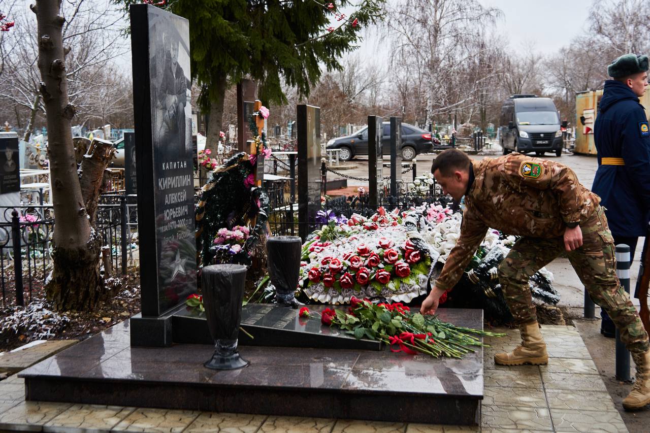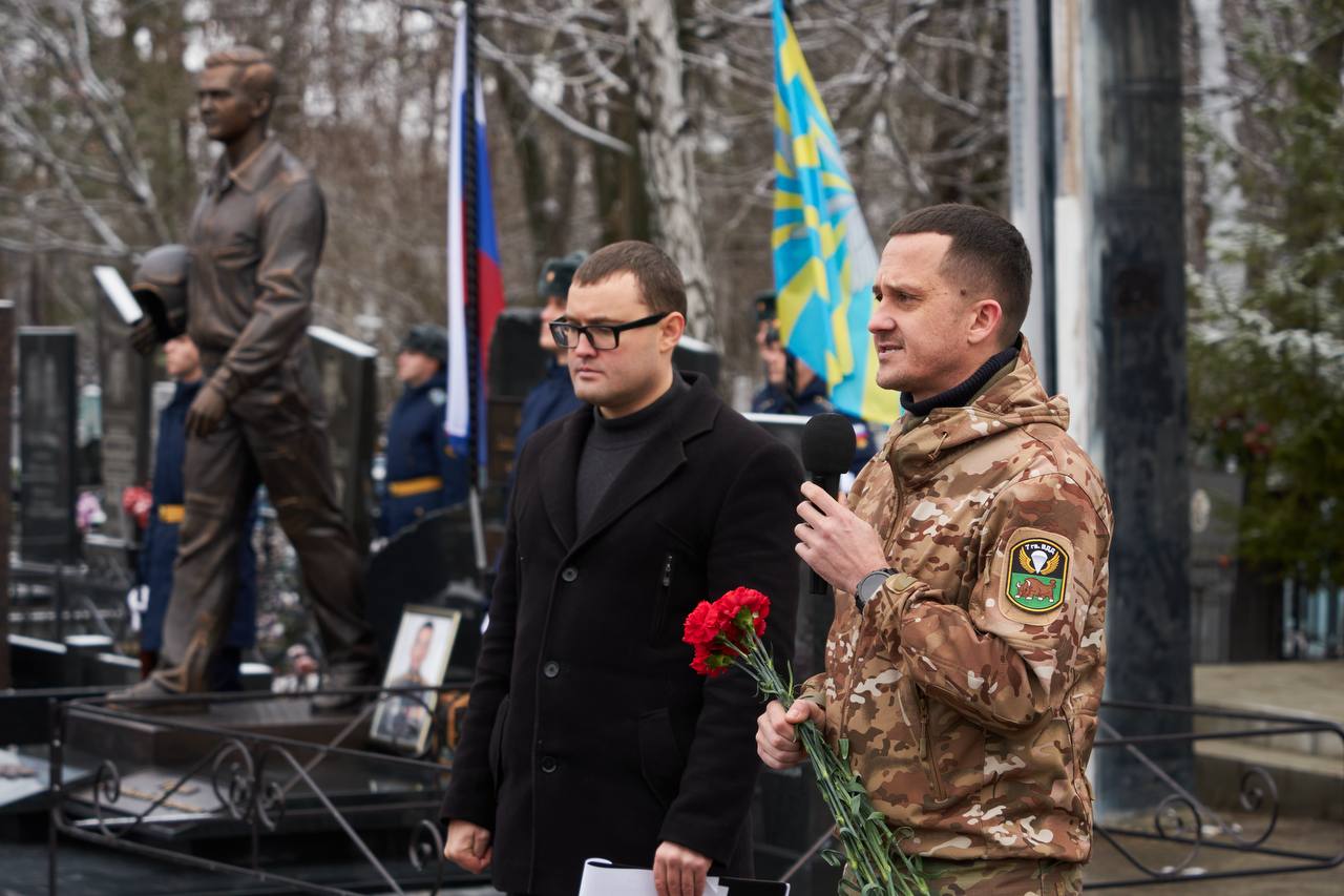 Память Героя почтили минутой молчания и возложили цветы к мемориалу. Цветы также возложили к памятникам полковника, Героя Советского Союза Александра Сергеевича Голованова и Героя России капитана Алексея Юрьевича Кириллина.