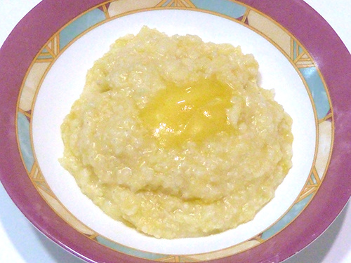 Далее в кастрюлю заливается очищенное пшено, можно добавить молоко, комбинируя его с водой в пропорции 1:4. Затем к этой смеси добавляется измельченная тыква, соль и сахар. Что касается сахара, если выбирается мед, его лучше добавлять в уже готовую кашу, в тарелку.