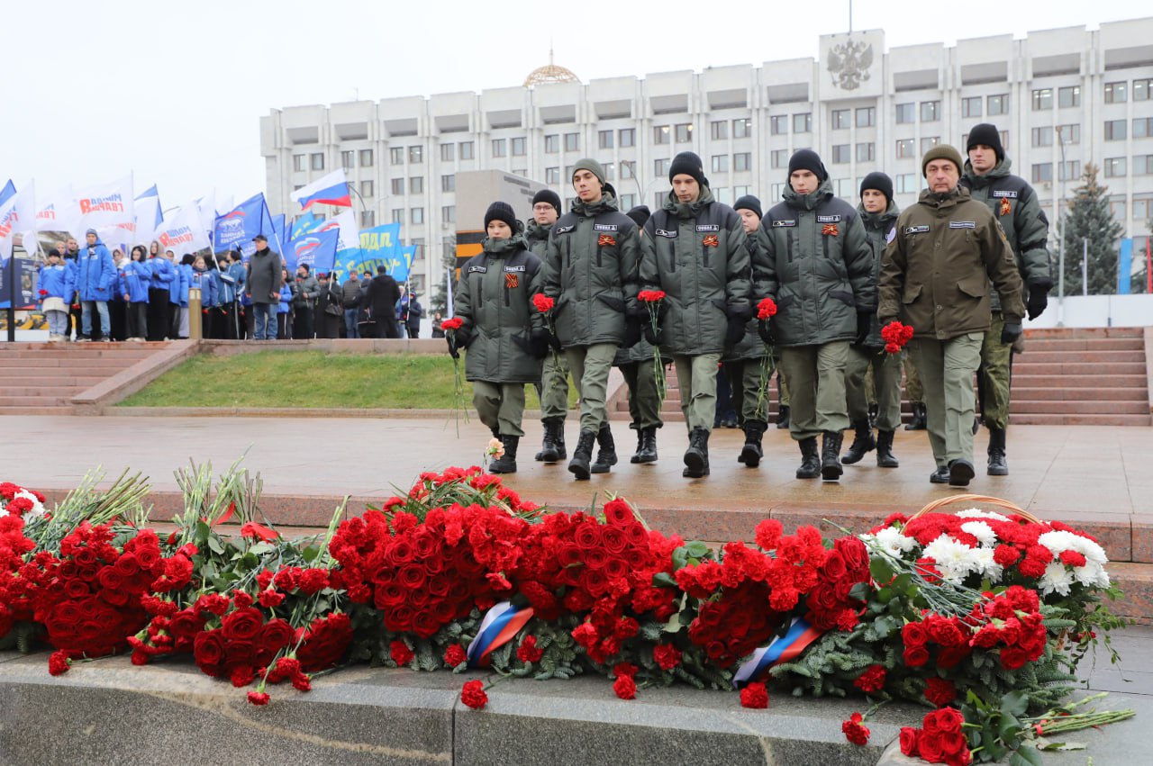 3 декабря, в День Неизвестного Солдата, на площади Славы в Самаре возложили цветы к Вечному огню и горельефу «Скорбящей Матери-Родине».