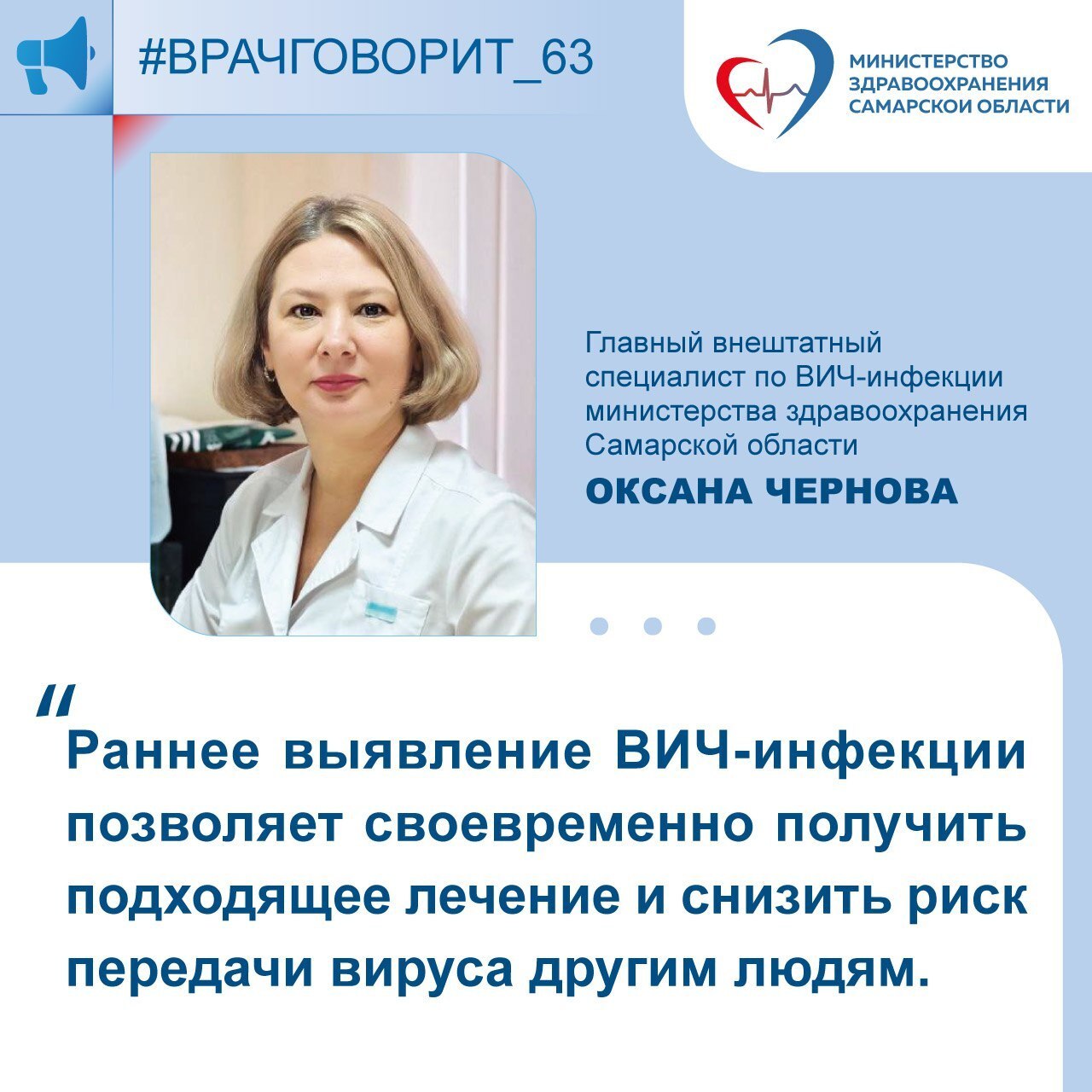 Главный внештатный специалист по ВИЧ-инфекции министерства здравоохранения Самарской области, главный врач Самарского областного клинического центра профилактики и борьбы со СПИД Оксана Чернова: