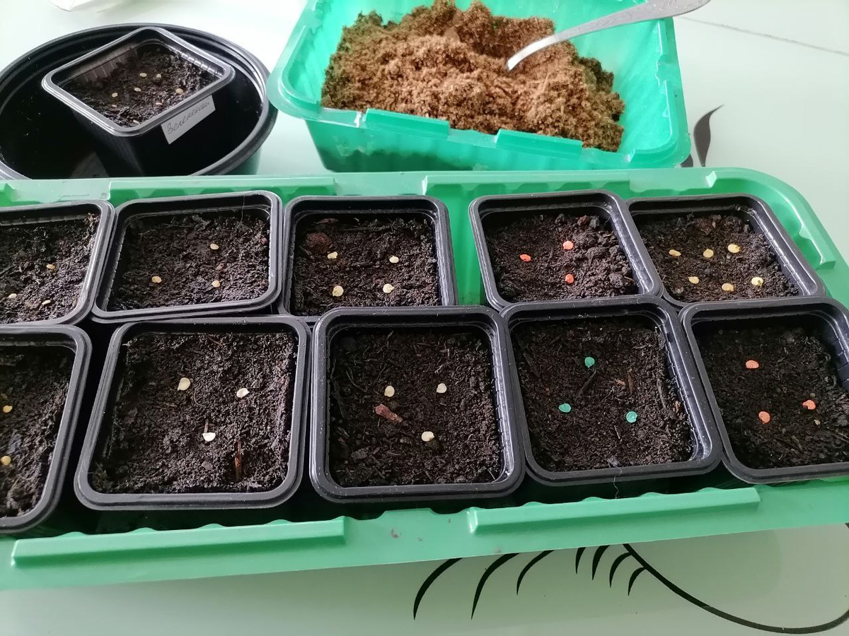 В этом сезоне было принято решение засеять четыре сорта баклажанов и шесть сортов сладкого перца, не прибегая к замачиванию. Так, начав посев в конце февраля, уже к началу марта появилось несколько всходов. Например, баклажаны "Изумрудные подвески" и "Алмаз" показали свои первые всходы на 5-й и 6-й день соответственно, а перцы "Джемени" и "Джейд" начали проклевываться на 7-й день. Этот результат стал настоящим открытием для сада: быстрая прорастание без замачивания.