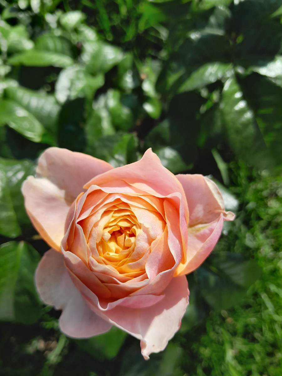 Вувузела относится к красавицам чайно-гибридной категории. Кустик обычно достигает высоты около метра с шириной около 60 см. Однако, в условиях сильных дождей рост может замедляться. Листва этой розы поражает своей глянцевой текстурой, обладая благородным зеленым цветом с оливковыми оттенками.