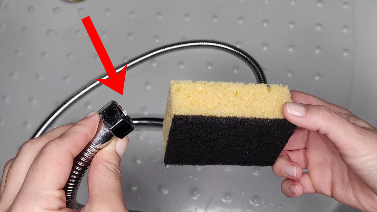 Губка поможет не только в уборке стен и поддона, но и в очистке душевого шланга. Известно, что вода, проходящая через шланг, может не всегда быть чистой. Для очистки шланга нужно отрезать небольшой кусочек губки и придать ему форму цилиндра. Затем этот кусочек вставьте в шланг, прикрутите его на место и включите воду.