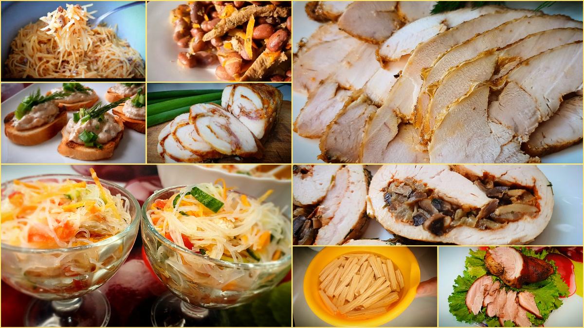 - Рулет с грибами из индейки: Это популярное и вкусное блюдо подойдет как в горячем, так и в холодном виде, и легко готовится из доступных ингредиентов.