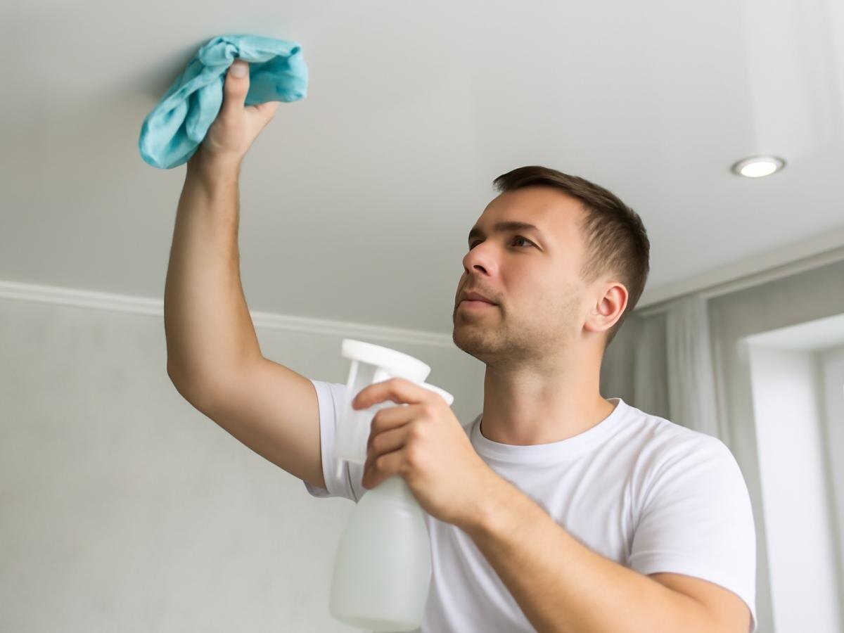 Ключевым моментом при уходе за потолками является применение мягких моющих средств и бережный подход. Глянцевые потолки можно чистить средствами для стекол, а матовые потребуют особого внимания: очистка должна происходить в два этапа — сначала с помощью мыльного раствора, затем с использованием раствора нашатырного спирта для устранения разводов.