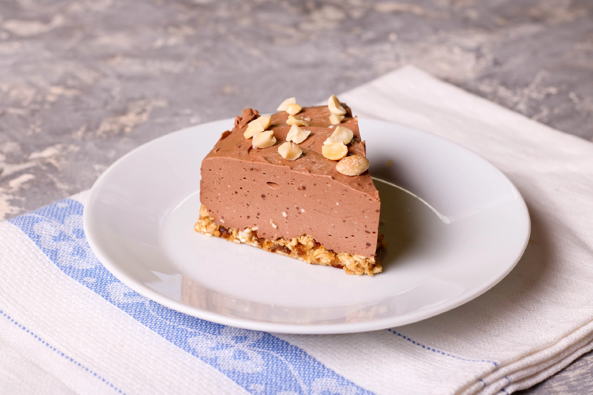 Сначала финики следует замочить в теплой воде на несколько часов. Это позволяет им стать мягче. После этого удалить косточки.После подготовки фиников, с помощью блендера необходимо размельчить их вместе с овсяными хлопьями. При необходимости добавить немного воды — около столовой ложки будет достаточно.Полученная масса выкладывается в форму. Рекомендуется использовать разъемное кольцо для удобства извлечения. Если такой формы нет, можно застелить дно обычной формы пергаментом.Теперь время для желатина. Его нужно замочить в воде и оставить на 40 минут. После этого распустить на водяной бане. В растопленный желатин добавляется творожный сыр, какао и мед. Смесь тщательно перемешивается венчиком до однородной консистенции.Полученную шоколадную массу выложить поверх основы и установить в холодильник для застывания на 4 часа.Шоколадный торт без выпечки — это не только вкусно, но и полезно. Он станет отличным способом порадовать себя и близких необычным десертом, который не требует запекания, а значит, идеален для теплых летних дней.
