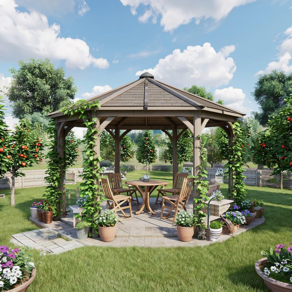 На последнем этапе стоит уделить внимание отделке. Защитите древесину лессирующими антисептиками или укрывными красками. Внутренние пространства можно оформить в светлых тонах, чтобы визуально расширить их. Наполните беседку зелеными растениями, такими как вьющиеся розы или клематисы, чтобы создать уютную атмосферу и приручить жаркое солнце.