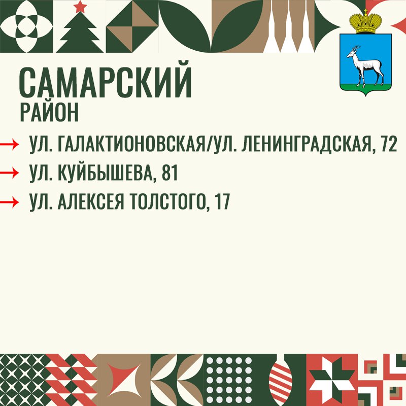 Полный перечень елочных базаров в Самаре доступен на сайте администрации города https://samadm.ru/media/news/57325/.