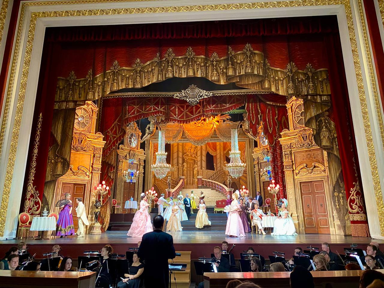 По-настоящему празднично-сказочным подарком для всех присутствующих стал «Штраус-Бал». На сцене прозвучали любимые и узнаваемые номера из оперетт великого композитора.