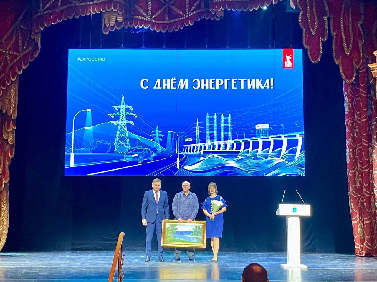 Со сцены отметили юбилей лидера отечественной гидроэнергетики – Жигулёвской ГЭС! 70 лет назад был запущен её первый гидроагрегат. И одну из старейших династий ГЭС - Рубцовы-Цыганок. Достойных продолжателей семейного дела – Елену и Александра Цыганков пригласили на сцену и вручили ценный подарок.