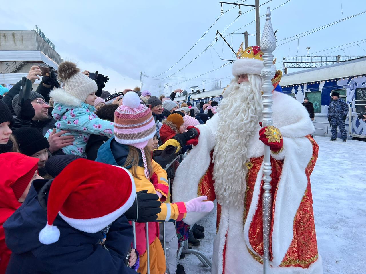 Сегодня на перрон железнодорожного вокзала в Тольятти впервые прибыл сказочный поезд Деда Мороза. Волшебник приехал в наш город в рамках своего ежегодного путешествия по стране. Отметим, с 19 ноября до 11 января он посетит 70 городов и вернётся к себе в Великий Устюг.