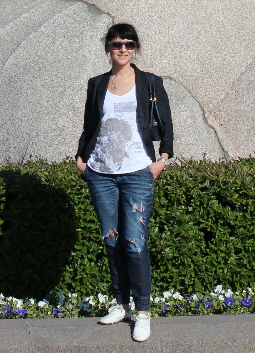 - Майки с пайетками – Элементы вечернего наряда не должны присутствовать в повседневной жизни. Блестящие майки могут создать впечатление, будто стиль остался в нулевых. Куда более уместно выглядеть стильно и современно через качественные ткани и крой.