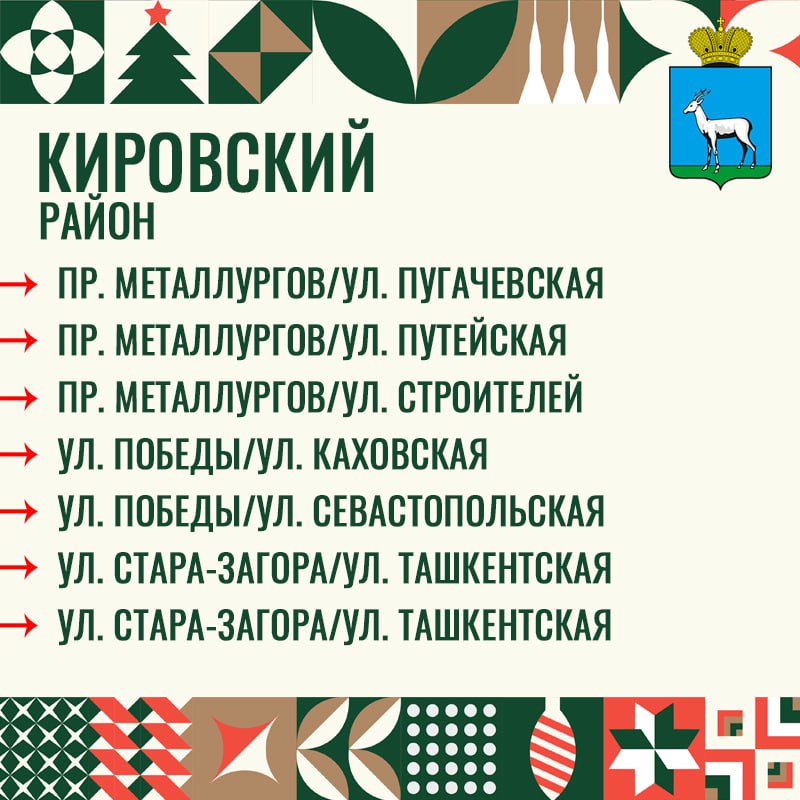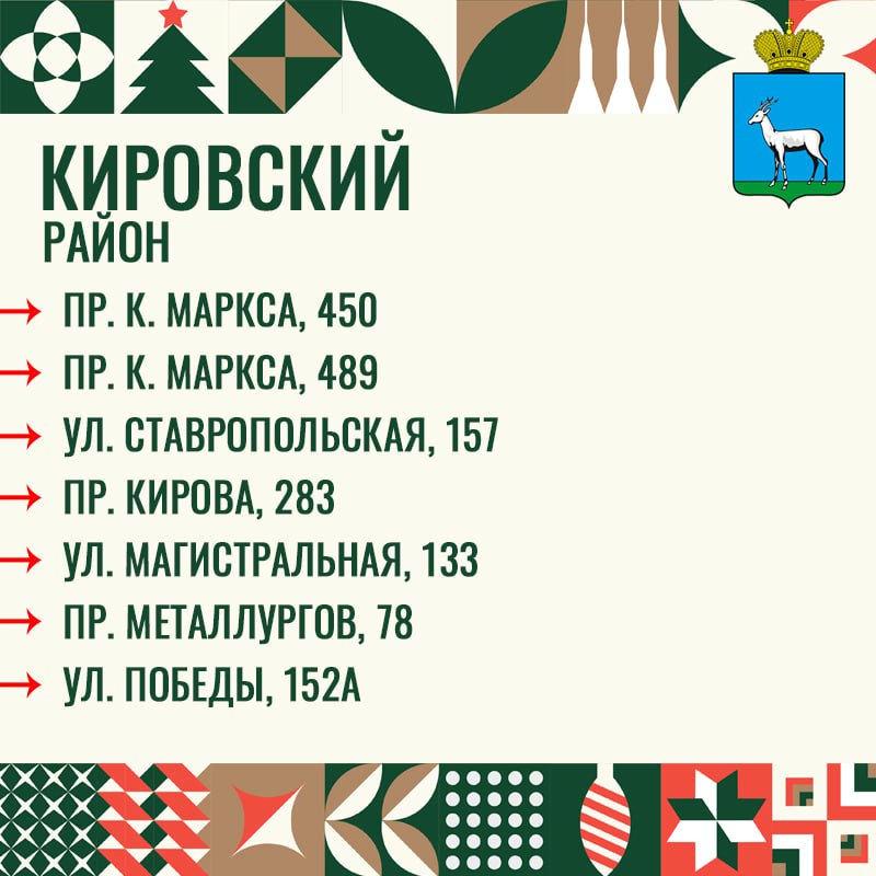 Полный перечень елочных базаров в Самаре доступен на сайте администрации города https://samadm.ru/media/news/57325/.