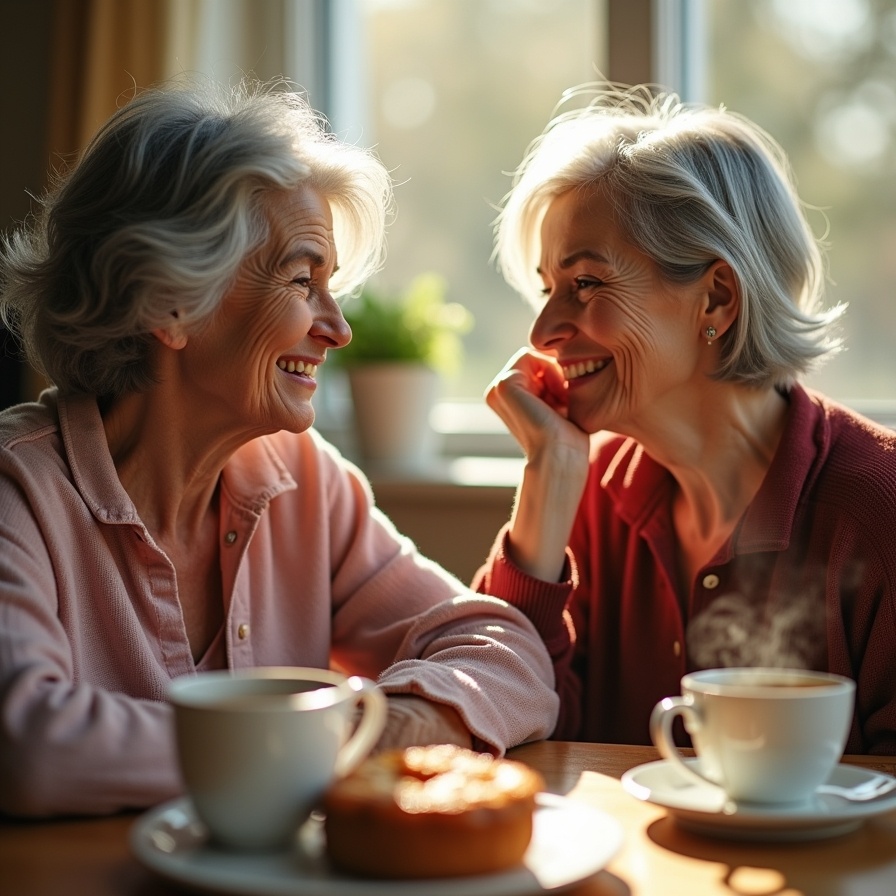 На одной из уютных кухонь две старые подруги наслаждаются чаем и обсуждают изменения, которые приносит возраст.