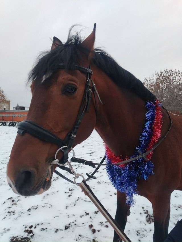 Патрульный конь по имени Бабуин уже готовится к новому 2026 году и желает тольяттинцам хорошего праздника и отличного настроения