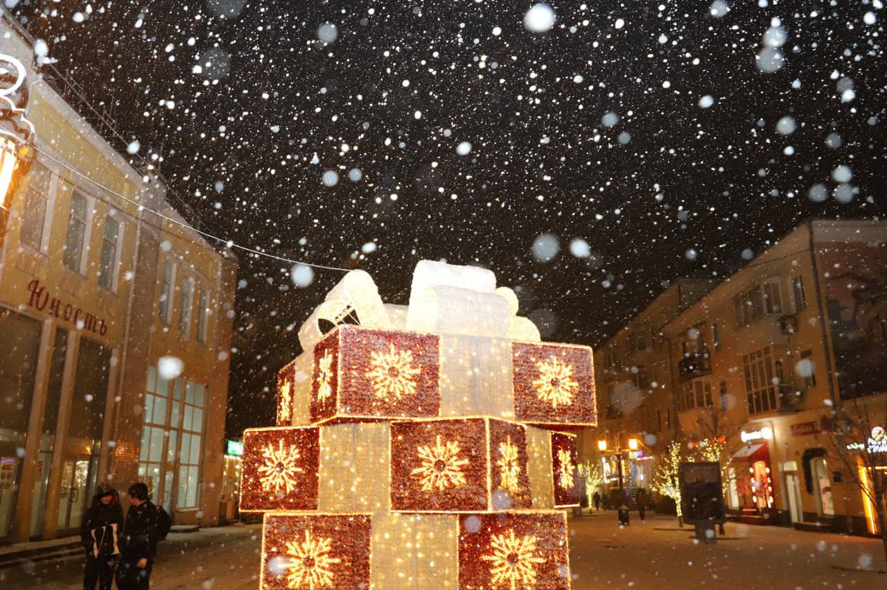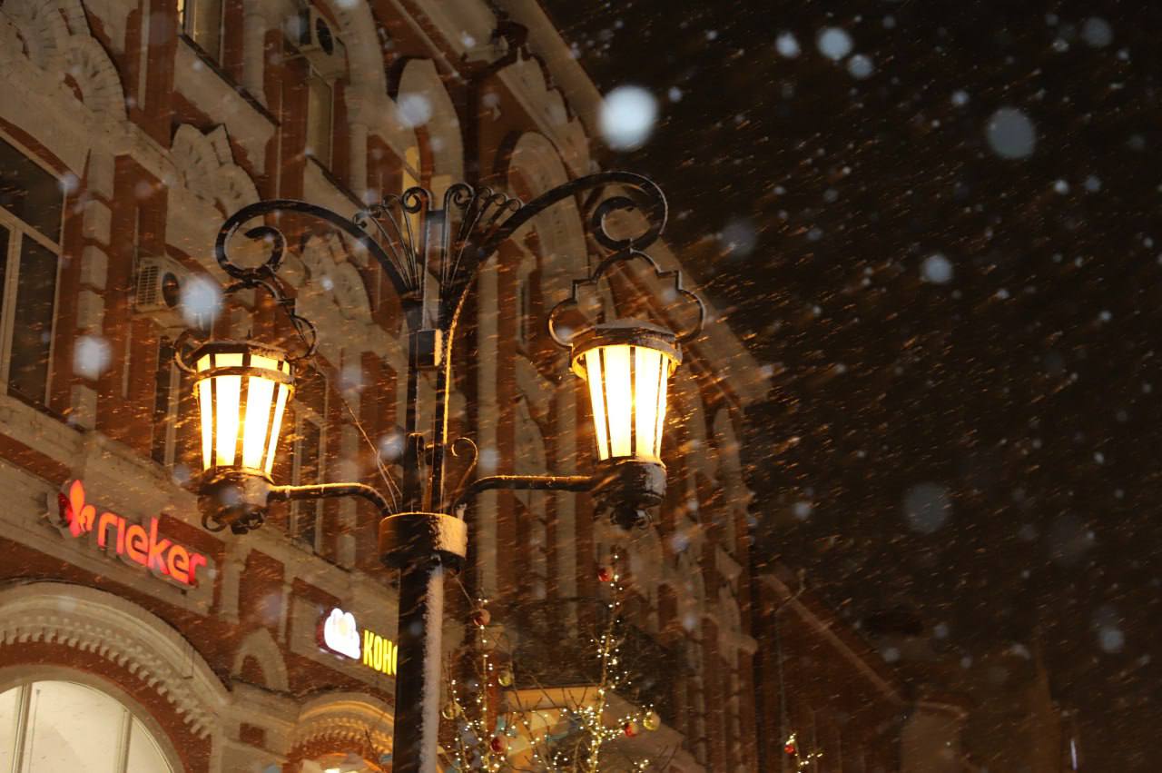 Снегопад украсил улицы Самары вечером, 22 декабря. Новогодняя иллюминация на Ленинградской улице выглядит сказочно! Ещё недавно там установили новые световые фигуры.