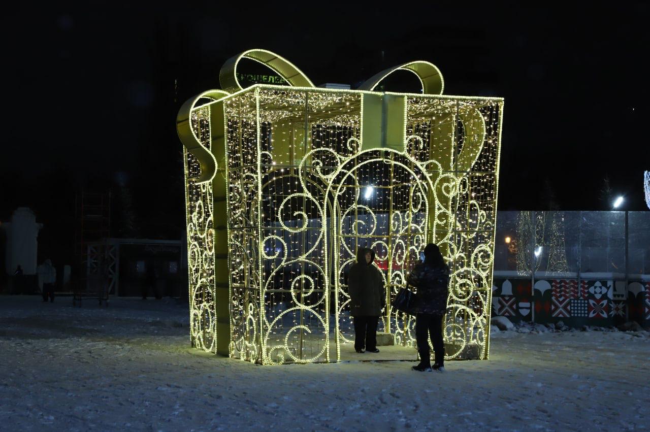 Праздничный комплекс на главной площади Самары откроется 27 декабря. Здесь установили семь наряженных елок, самая высокая из них – 25 м. Также площадь украсят 70 световых элементов – светящиеся деревья, фонтаны, декоративные фонари, крупные елочные шары и арки.