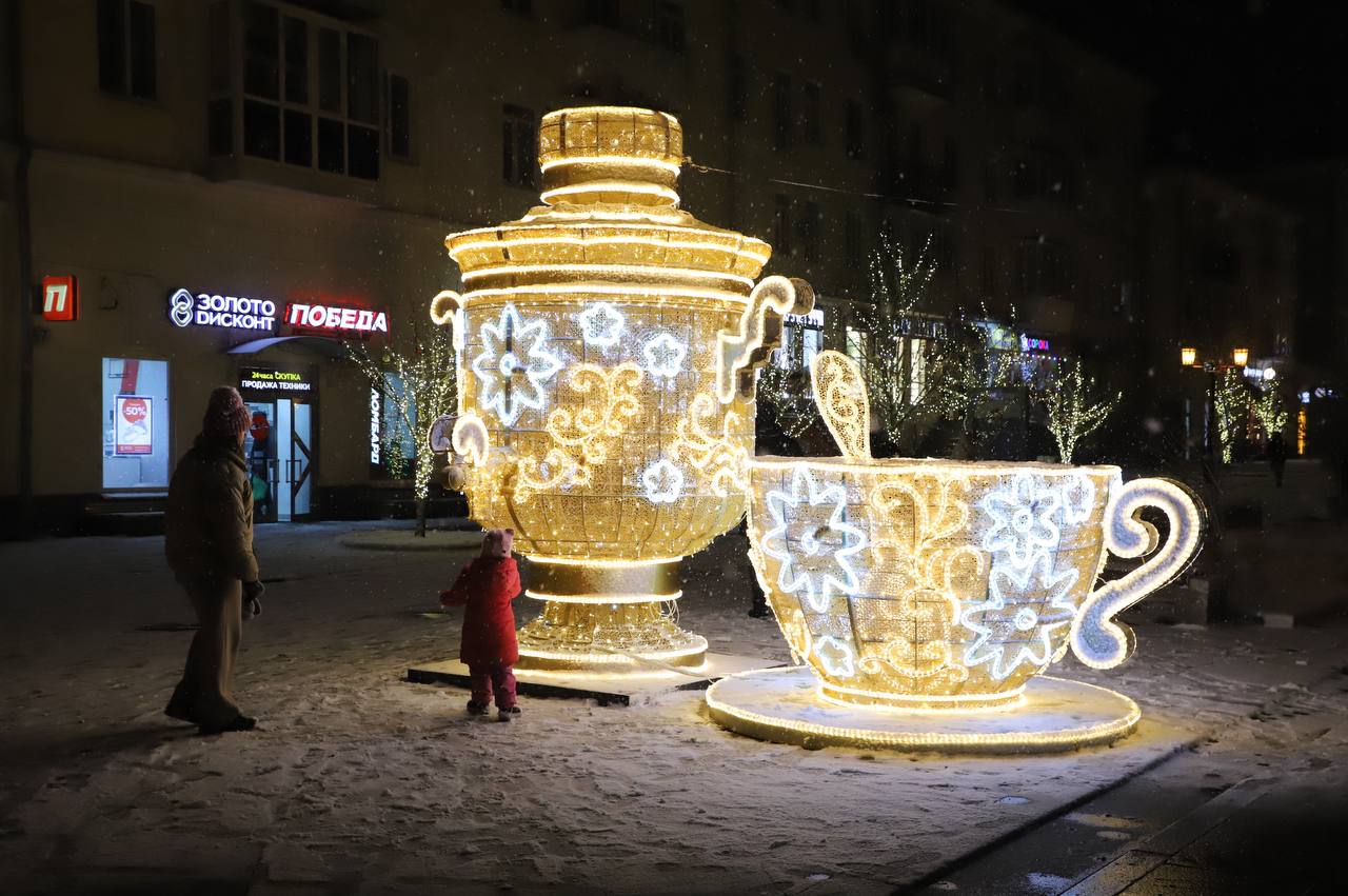 Новые световые арт-объекты в русском стиле установили в Самаре к Новому году