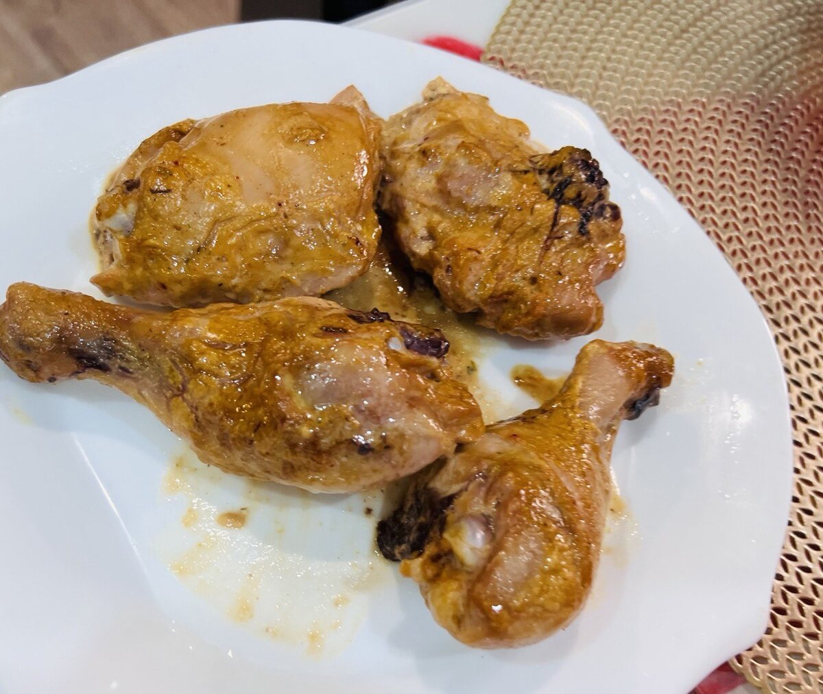 Затем куриные голени и бедра помещаются в этот маринад, где они могут хорошо пропитаться вкусом. Процесс настаивания займет минимум 30 минут, а лучше 1 час — так мясо станет более насыщенным и ароматным.